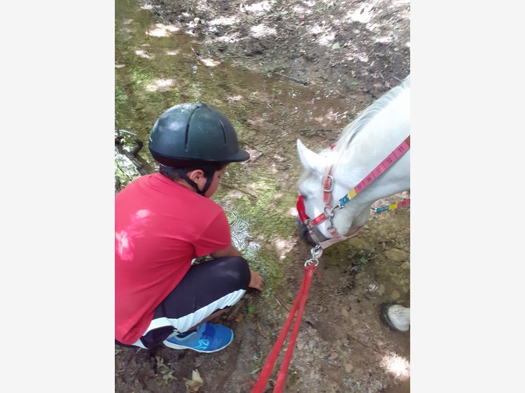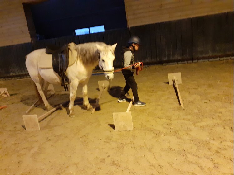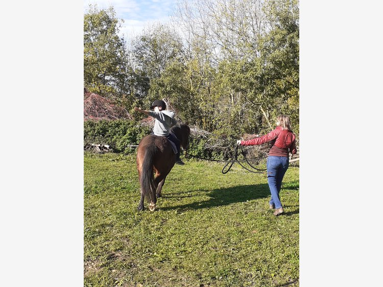 Les séances peuvent se composer d'un temps de soin au cheval, l'approche, la découverte puis une balade tenu en main à cheval ou à pieds au pas à côté du cheval/poney.