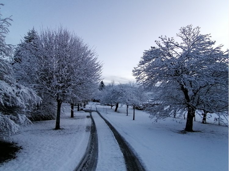Les chevaux sont accueillis au pré, sous la maison. Un grand espace avec une herbe généreuse les attend. Une source coule dans le parc, l'eau est à disposition, en libre service !