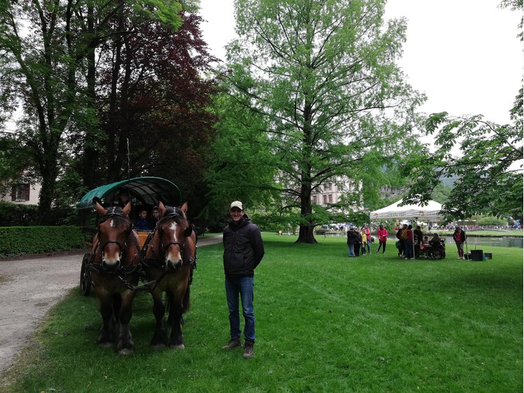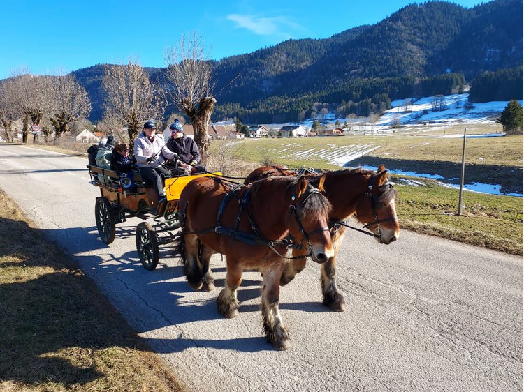 Promenade en calèche accessible PMR dans le Vercors, à Autrans ou au départ de votre établissement, Marianne se déplace avec sa calèche et ses chevaux.