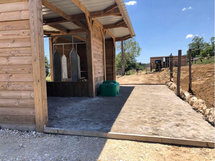Les chevaux sont accueillis au paddock, individuel ou en petit groupe. Foin et abreuvoir à disposition directement dans les abris.