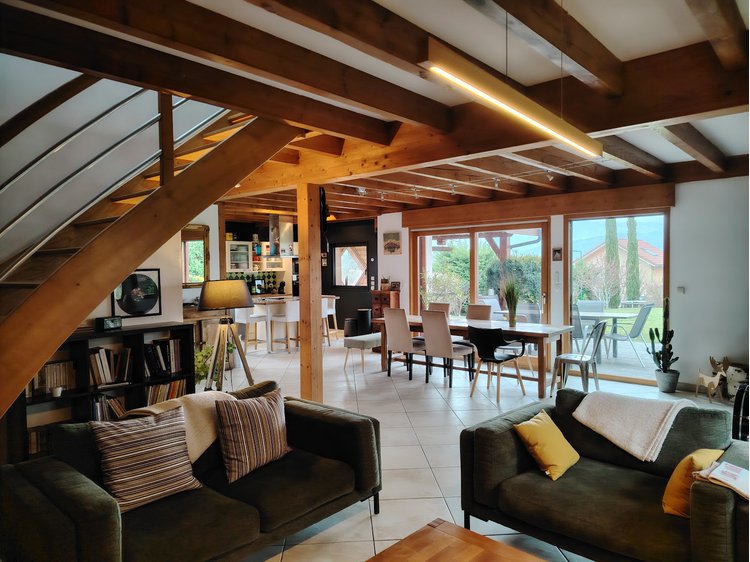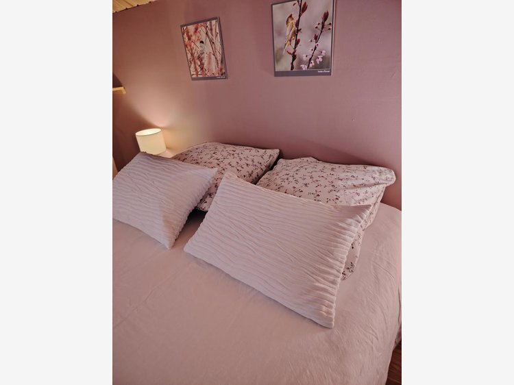 A l'étage : coin jeux, 4 chambres toutes équipées d'un lit 2 pers., wc, salle de bains sur le palier. Chauffage au sol au RDC (radiateurs à l'étage), WIFI, TV écran plat (Netflix).