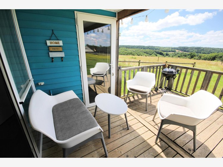 Dans un environnement propice à la détente et aux activités de plein-air, Bungalow coquet avec terrasse privative couverte, exposé ouest, indépendant, vue dégagée sur la nature environnante et les chevaux du Domaine.