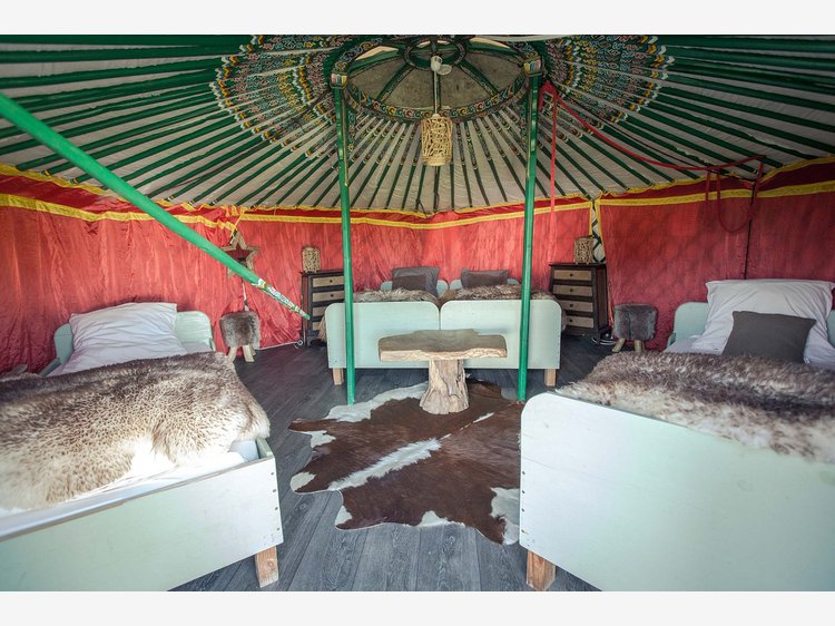 - Terrasse privative avec SPA ou bain nordique privatif selon les yourtes.