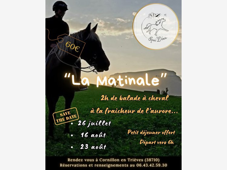 Anne vous propose une expérience unique, être à cheval "entre chien et loup", en soirée, sous les étoiles ou à la fraicheur de l'aurore. 2h de balade dans les heures les plus fraiches de l'été, après 21h ou à partir de 6h, départ de Cornillon en Trièves. Apéritif ou petit-déjeuner offert.